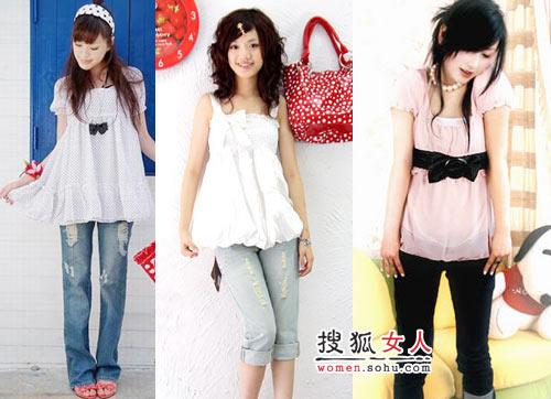 編輯解析:漂亮的(de)圓點娃娃衫搭配牛仔褲,可(kě)愛而随意,腰部的(de)蓬松款式的(de)娃娃衫不會(huì)出賣你(nǐ)小(xiǎo)胖腰,帝國線分(fēn)割的(de)雪(xuě)紡娃娃衫,成功提升胸線,三款娃娃衫都(dōu)帶有(yǒu)蝴蝶結做爲裝飾,讓整個(gè)搭配生動起來。