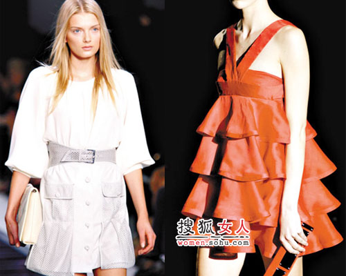 左圖:個(gè)子嬌小(xiǎo)的(de)人(rén),絕對不要錯過這一季的(de)高(gāo)腰線服飾,這是變高(gāo)的(de)好法寶;下半身略圓的(de)人(rén),也(yě)不妨如(rú)法炮制(zhì),利用(yòng)高(gāo)腰線把缺點統統遮起來。這條是孕婦必讀(dú)的(de)!