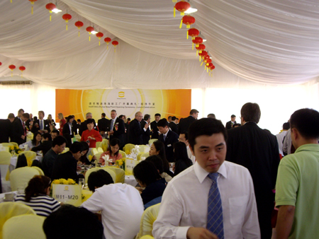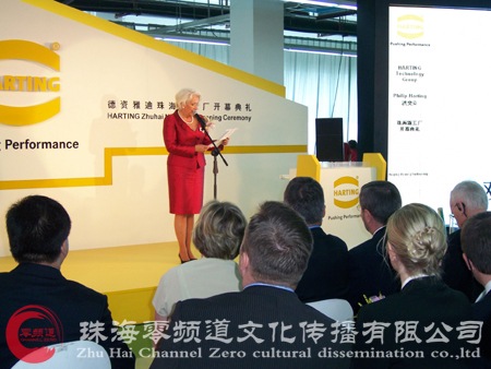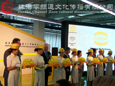 投資1200萬歐元的(de)德資雅迪HARTING珠海(hǎi)新廠(chǎng)10月(yuè)19日開(kāi)業(yè)慶典盛大(dà)舉行(xíng),德資雅迪公司總裁/合夥人(rén)Mr.Dietmar Harting,高(gāo)級副總裁/合夥人(rén)Mrs. Margrit Harting,亞洲區總監Mr.Philip Harting 及受邀嘉賓德國駐華公使Mr.Werner H.Lauk,珠海(hǎi)市政府副秘書(shū)長李英女(nǚ)士,珠海(hǎi)市政協副主席、高(gāo)新區管委會(huì)副主席劉青華先生,管委會(huì)主任熊燦均先生等五百多位嘉賓參加了本次慶典活動。珠海(hǎi)零頻道全程參與了本次慶典活動的(de)組織及接待工(gōng)作。圖爲精彩現場(chǎng)。