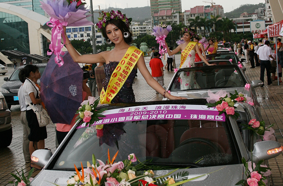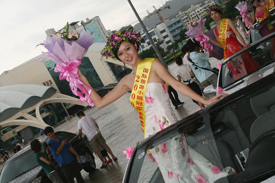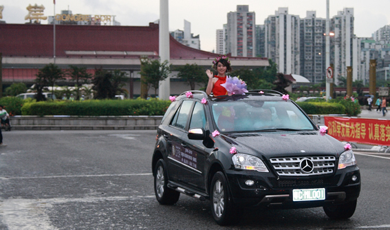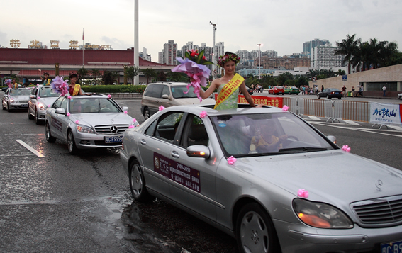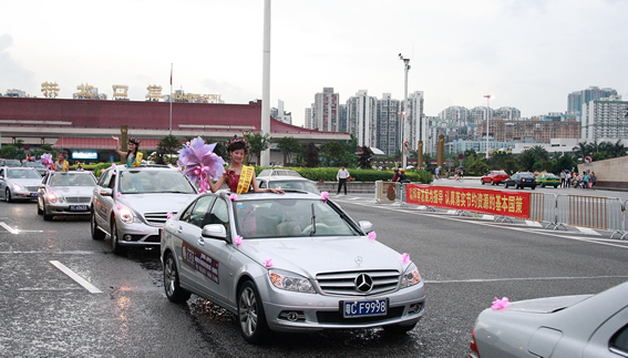 6月(yuè)28日下午,國際旅遊小(xiǎo)姐大(dà)賽珠海(hǎi)賽區組委會(huì)在本屆賽事現已報名選手中抽選了16名佳麗(lì)參加了賽前花車(chē)環遊活動。本次環遊活動由珠海(hǎi)仁孚汽車(chē)銷售服務有(yǒu)限公司協辦,珠海(hǎi)仁孚提供了環遊的(de)16輛奔馳,因天氣原因部分(fēn)環遊線路(lù)取消,環遊車(chē)隊在珠海(hǎi)體育中心,野狸島及珠海(hǎi)拱北口岸受到(dào)了珠海(hǎi)市民(mín)的(de)熱(rè)烈關注和(hé)歡迎。