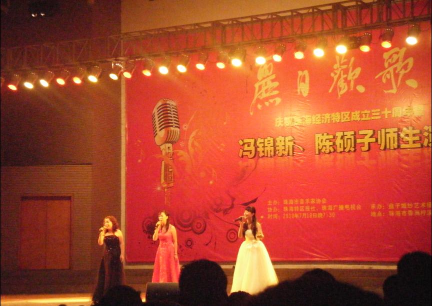 簡訊:慶祝珠海(hǎi)經濟特區成立30周年暨馮錦新、陳碩子師(shī)生演唱會(huì)7月(yuè)18日晚在香洲檸溪文(wén)化廣場(chǎng)舉行(xíng),師(shī)生兩百多人(rén)一起引吭高(gāo)歌,歌頌特區的(de)發展與繁榮,晚會(huì)吸引了上(shàng)千名觀衆駐足欣賞。兩位老師(shī)誨人(rén)不倦桃李滿天下,同時也(yě)熱(rè)心參加各類社會(huì)活動,其中馮老師(shī)跟公司多次合作,其美(měi)聲男高(gāo)音(yīn)唱法是大(dà)氣磅礴,餘音(yīn)繞梁而讓人(rén)回味無窮,引領珠海(hǎi)文(wén)化演出市場(chǎng)的(de)文(wén)化和(hé)品位。在此,特恭謝!