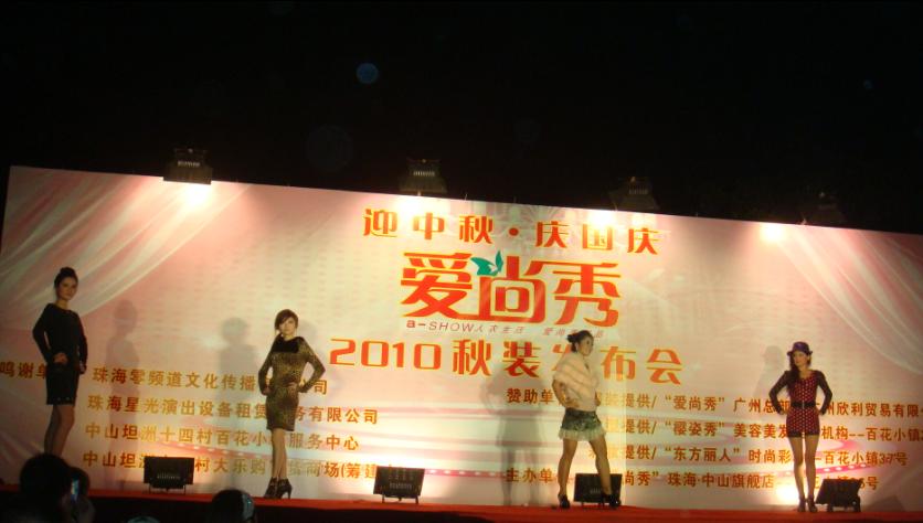 9月(yuè)18日晚,韓國品牌愛尚秀中山旗艦店(diàn)秋裝發布會(huì)秋裝展示秀在坦洲百花小(xiǎo)鎮廣場(chǎng)舉行(xíng),公司六名模特很好的(de)展示及演繹了愛尚秀最新款秋裝潮流的(de)特點,得到(dào)了客戶的(de)高(gāo)度認可(kě)。